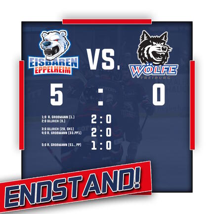 In einem sehr seriösen Auftritt haben die Eisbären in einer zunächst ausgeglichenen, dann vor allem nickligen Partie durch einen Dreierpack von Rico Großmann, sowie Doppelpack von Maurice Ullrich die Wölfe Freiburg mit 5:0 besiegt und so Platz 2 verteidigt. (mit Bildergallerie)
